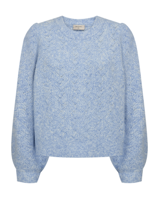 FREEQUENT PULLOVER SEVALIN HOLE PATTERN PUFF SLEEVE serenity melange