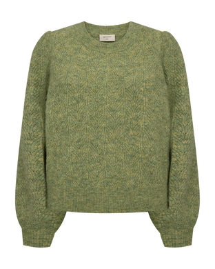 FREEQUENT PULLOVER SEVALIN HOLE PATTERN PUFF SLEEVE fern melange