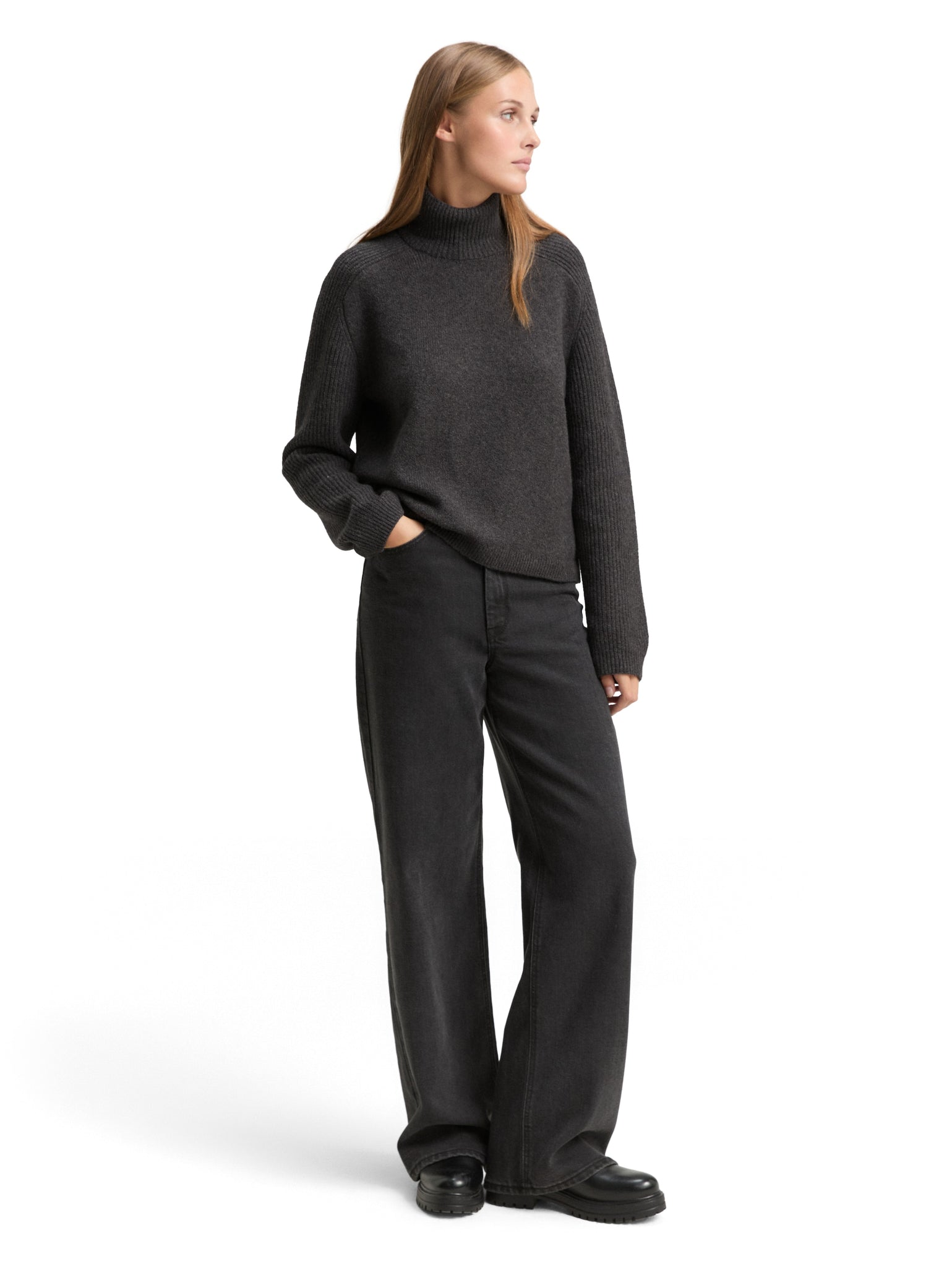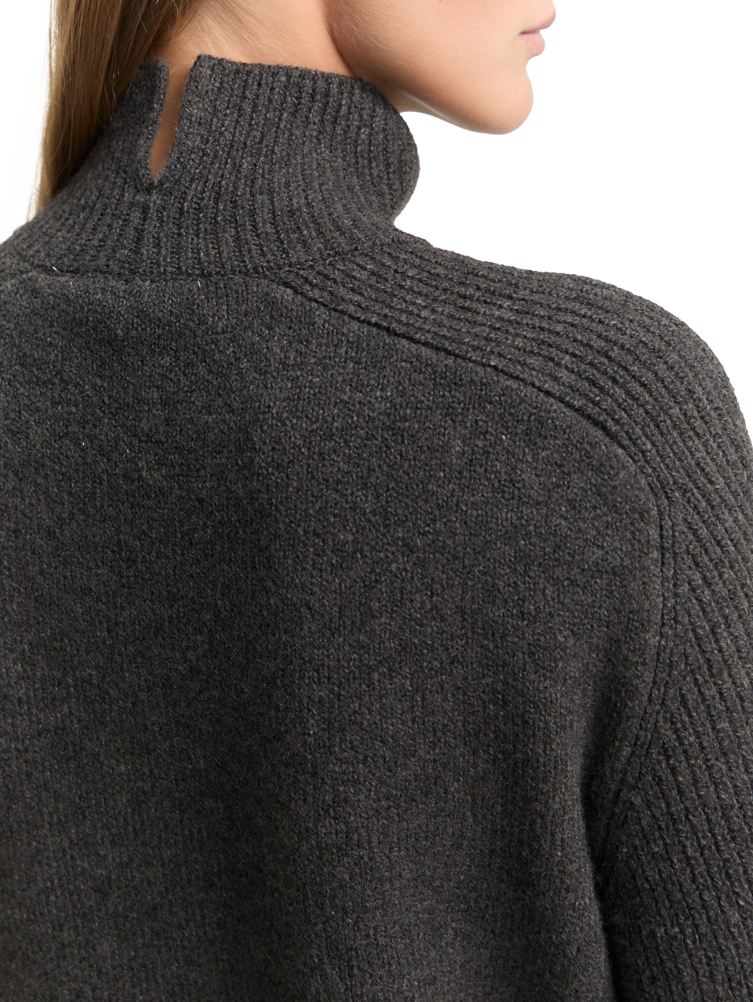 TOM TAILOR DENIM KNIT MOCK-NECK WITH SADDLE SHOULDER shale grey melange