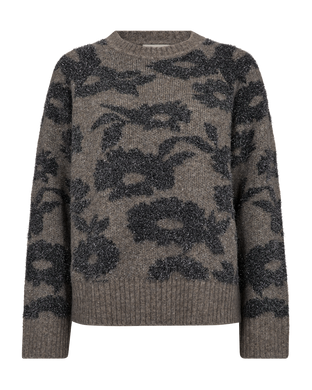 FREEQUENT PULLOVER PANTEA JACQUARD METALLIC FEATHER YARN morel mel. w. med. grey mel.