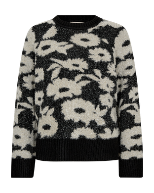 FREEQUENT PULLOVER PANTEA JACQUARD METALLIC FEATHER YARN black w. moonbeam melange