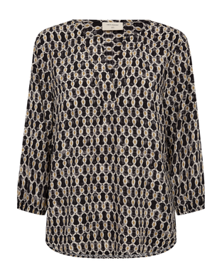 FREEQUENT BLOUSE ADNEY PRINTED WITH V-NECK black w. moonbeam