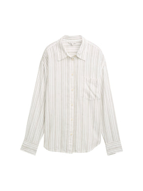 TOM TAILOR DENIM OVERSIZED LINEN MIX SHIRT white olive vertical shirt
