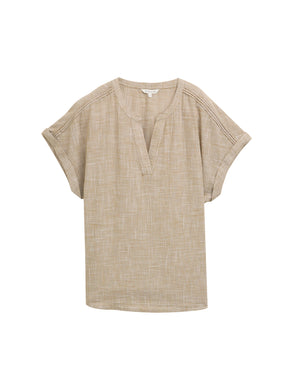 TOM TAILOR BLOUSE SHORTSLEEVE WITH SLUB STRUCTURE nutria olive
