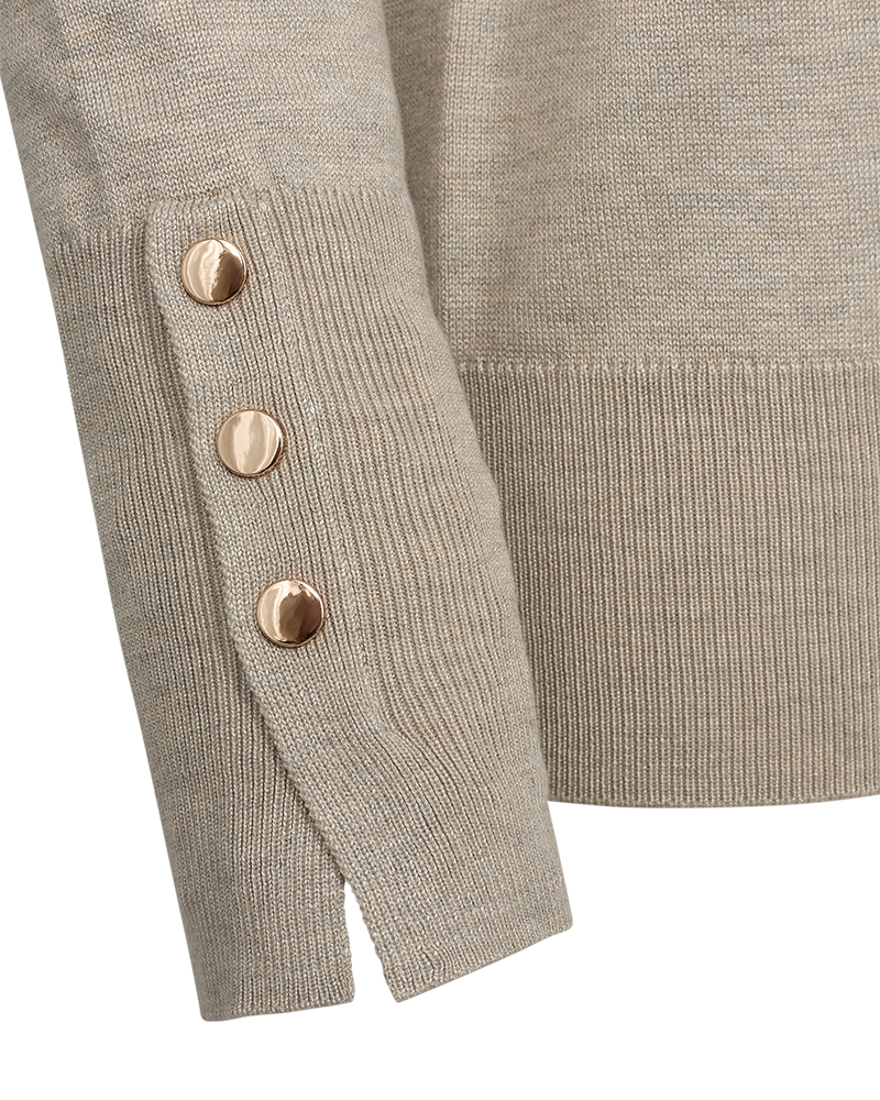 • Load image into Gallery viewer, FREEQUENT PULLOVER KATIE PLAIN FLAT GOLD BUTTON moonbeam melange