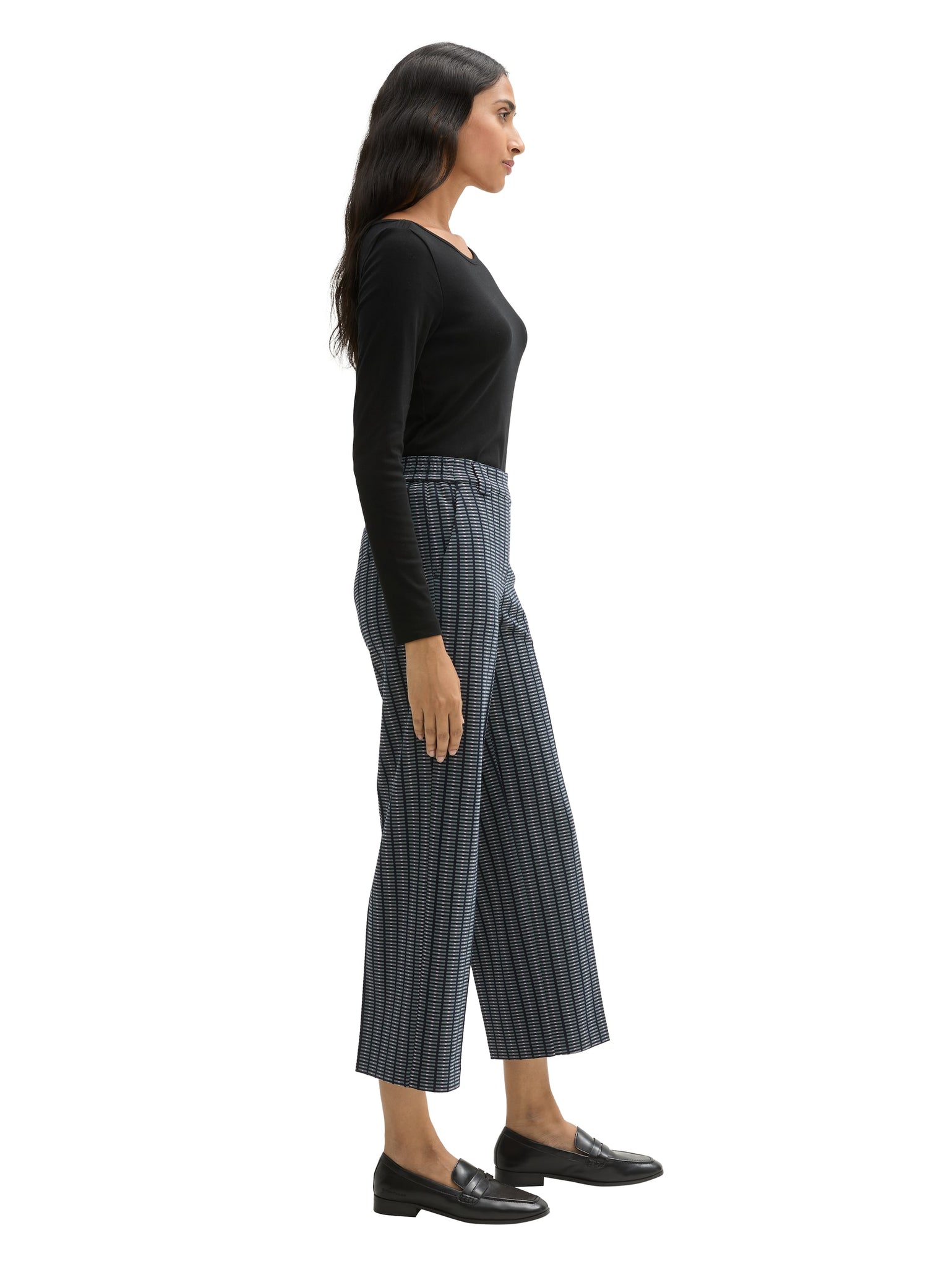 TOM TAILOR STRAIGHT LEG CROPPED PANTS contemporary navy check
